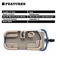 The concept is to combine the structure of the pontoon boat with the near waters. The material is aluminum-magnesium alloy which is applied in making high-speed train. Featured as light-weight, low-density, perfect-compression and heat-dissipation, and high concentration of corrosion resistance, it funtions excellently. No matter it is for family leisure, sightseeing, fishing or self-driving tour, it realizes the perfect combination of perf ormance and function of the pontoon yacht.